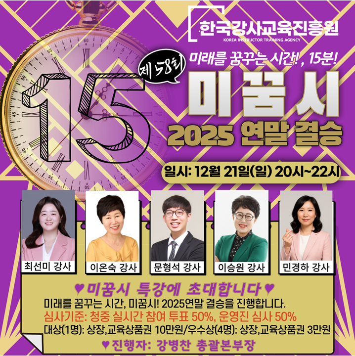 ๐12/21(์ผ) ์ 58ํ ๋ฏธ๋๋ฅผ ๊ฟ๊พธ๋ ์๊ฐ ์ฐ๋ง๊ฒฐ์น ์์ค์์