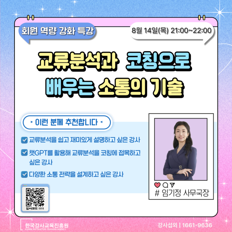 ๐8/14(๋ชฉ) ๊ต๋ฅ๋ถ์๊ณผ ์ฝ์นญ์ผ๋ก ๋ฐฐ์ฐ๋ ์ํต์ ๊ธฐ์